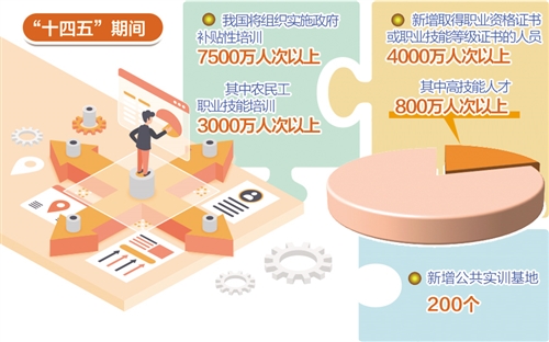 在1月7日舉行的國(guó)務(wù)院政策例行吹風(fēng)會(huì)上,人力資源社會(huì)保障部副部長(zhǎng)湯濤表示,為提升勞動(dòng)者就業(yè)創(chuàng)業(yè)能力,滿足產(chǎn)業(yè)轉(zhuǎn)型升級(jí)和技術(shù)進(jìn)步的要求,“十四五”期間,我國(guó)將組織實(shí)施政府補(bǔ)貼性培訓(xùn)達(dá)7500萬(wàn)人次以上,其中農(nóng)民工職業(yè)技能培訓(xùn)3000萬(wàn)人次以上;新增取得職業(yè)資格證書(shū)或職業(yè)技能等級(jí)證書(shū)的人員達(dá)到4000萬(wàn)人次以上,其中能夠達(dá)到高級(jí)技工、技師、高級(jí)技師的高技能人才達(dá)到800萬(wàn)人次以上;新增公共實(shí)訓(xùn)基地200個(gè)。