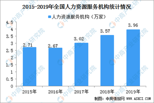 截至2019年底,全國共設(shè)立各類人力資源服務(wù)機構(gòu)39568家,從業(yè)人員674836人,建立人力資源市場網(wǎng)站15020個。截至2019年底,2019年全行業(yè)營業(yè)總收入19553億元,同比增長10.26%。